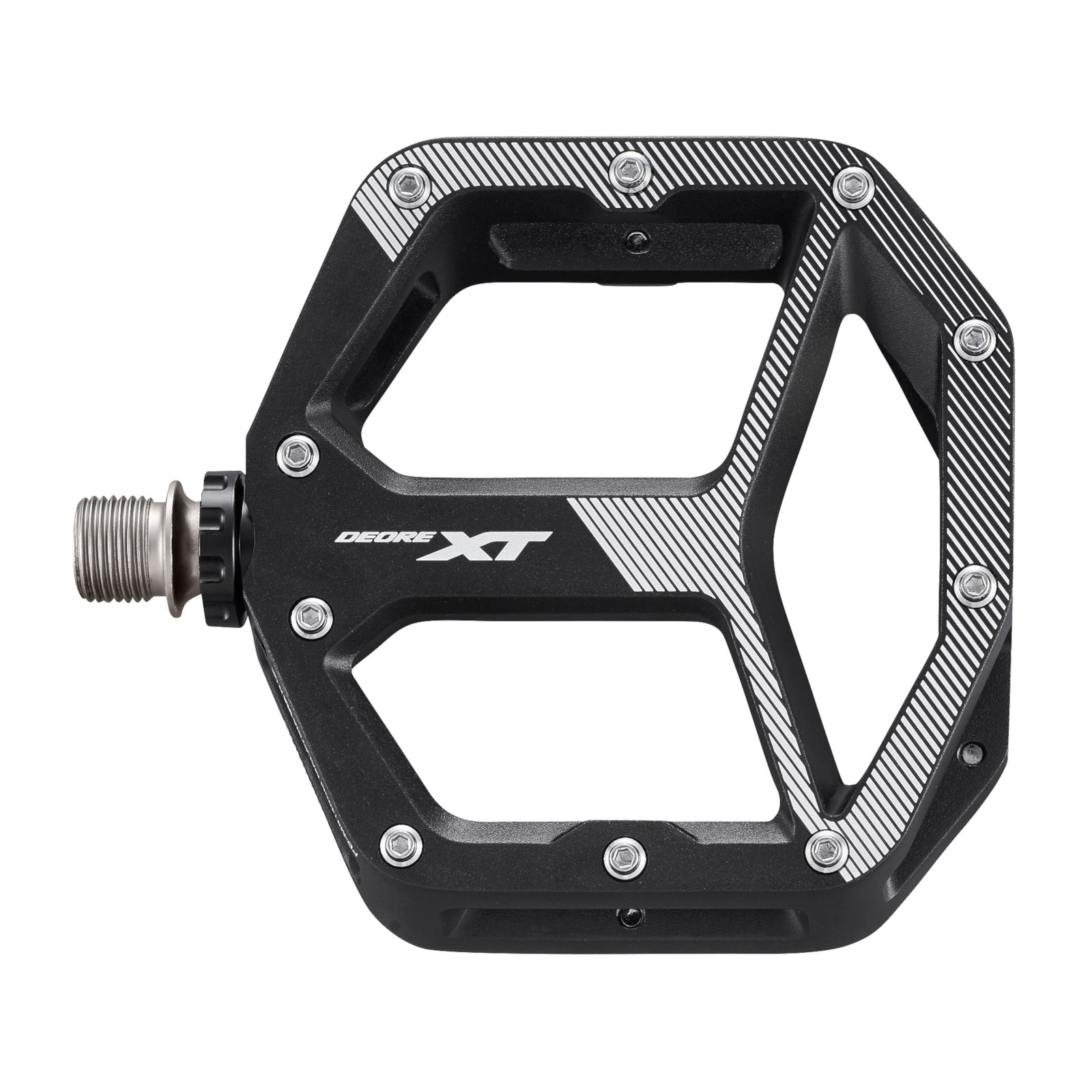 Велосипедные педали Shimano Deore XT PD-M8140, размер S/M, 110 мм x 115 мм, рекомендуемые размеры обуви 43 - 48, материал платформы алюминий, ось Cr-Mo, 10 сменных шипов на каждой стороне.