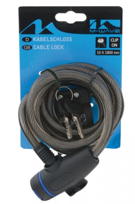 • Велозамок M-Wave 10х1800 мм с ключом (черный) 233840