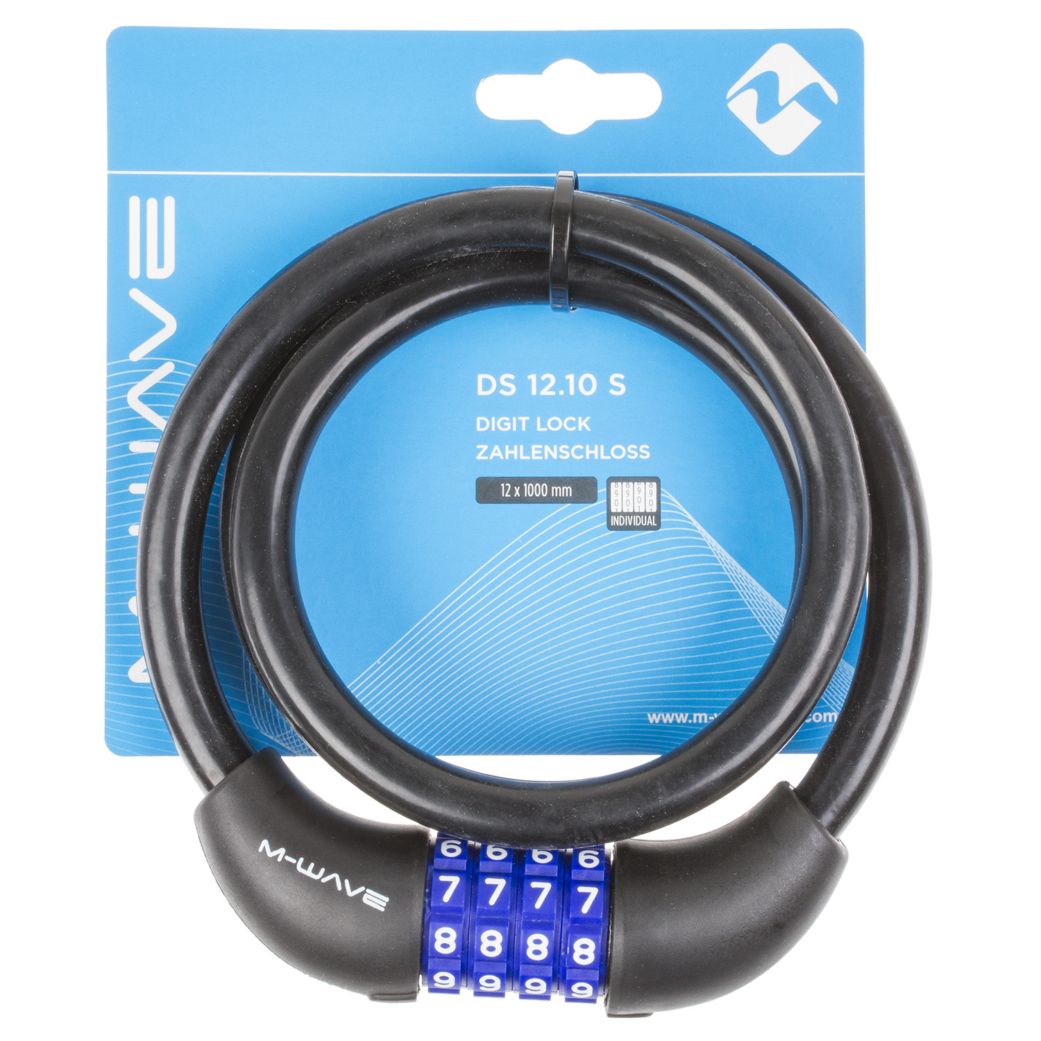 Велозамок M-Wave 12х1000 мм кодовый (черный)