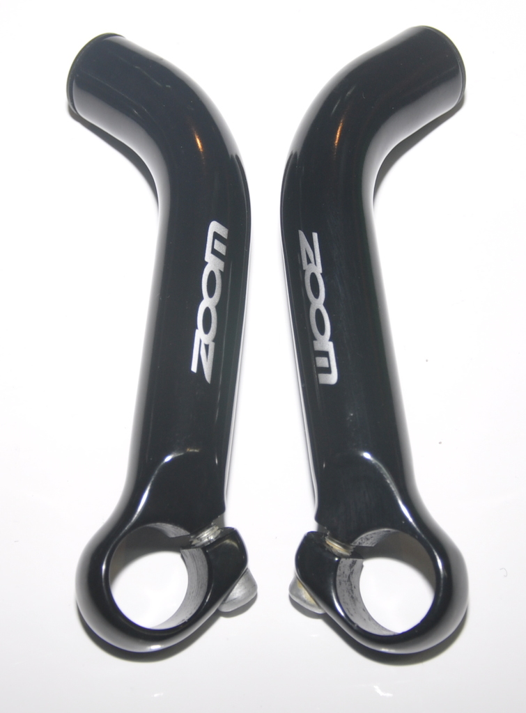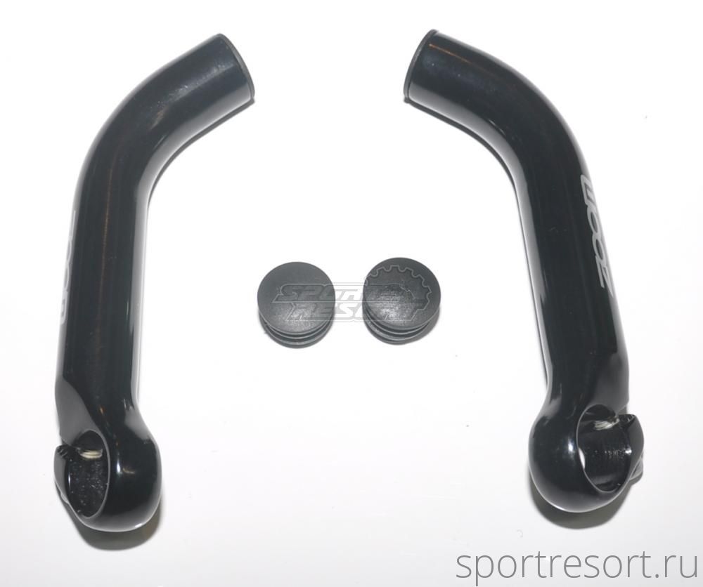 Рога на руль Zoom MT-30A, из кованного алюминия 6061, с загибом на конце, диаметр посадки на руль 22.2 мм, черные.